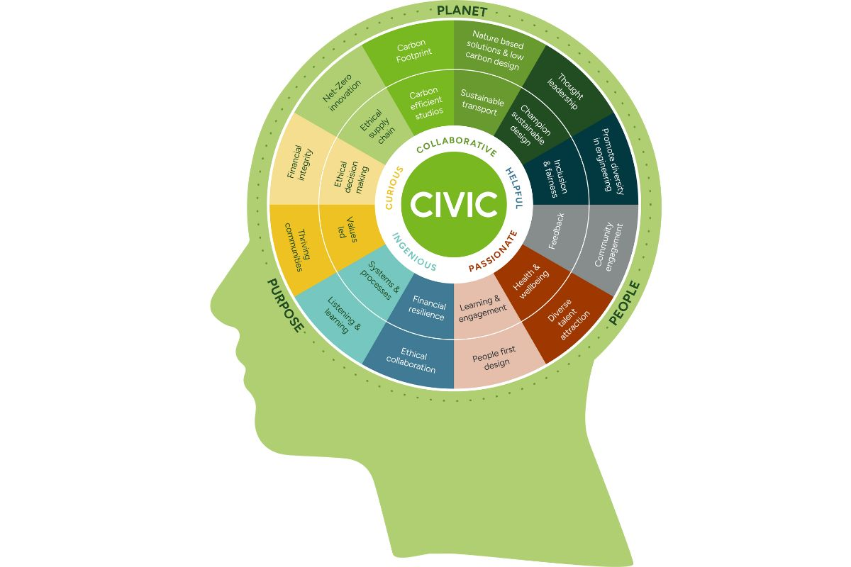 But that is only part of the story. The success of any building also relies on the success of its context more holistically - how it connects. At Civic Engineers, we developed what we call our Civic Conscience, a set of behavioural principles shaped by our values, that acts as a decision making framework and something that we use to guide our business strategy and operational choices.