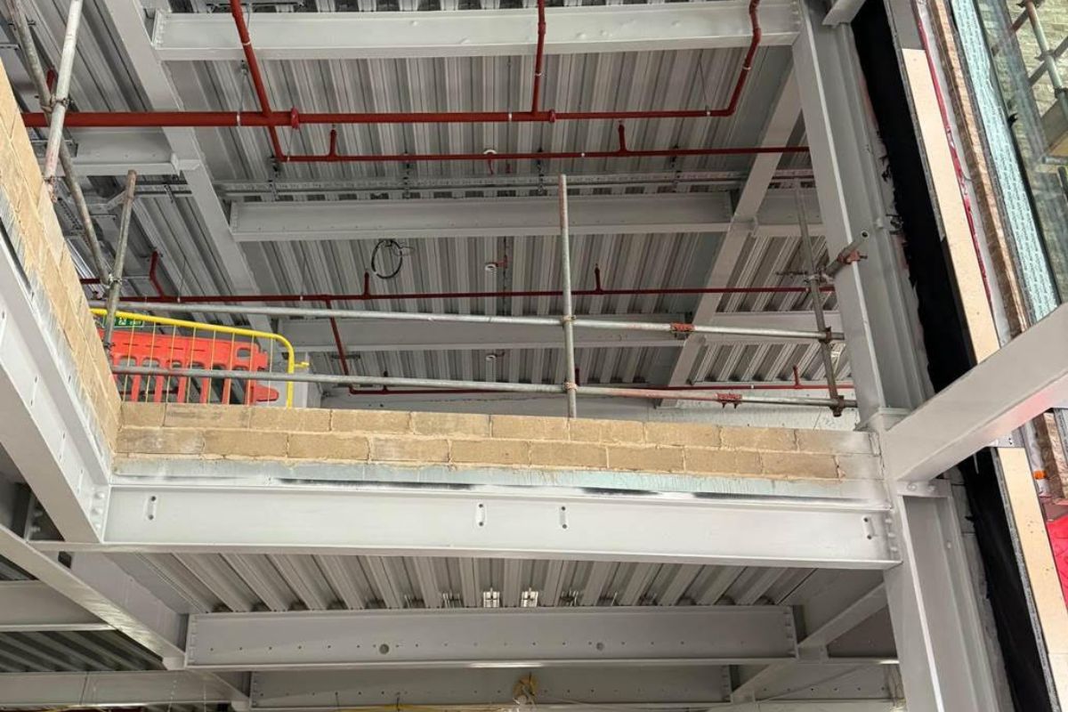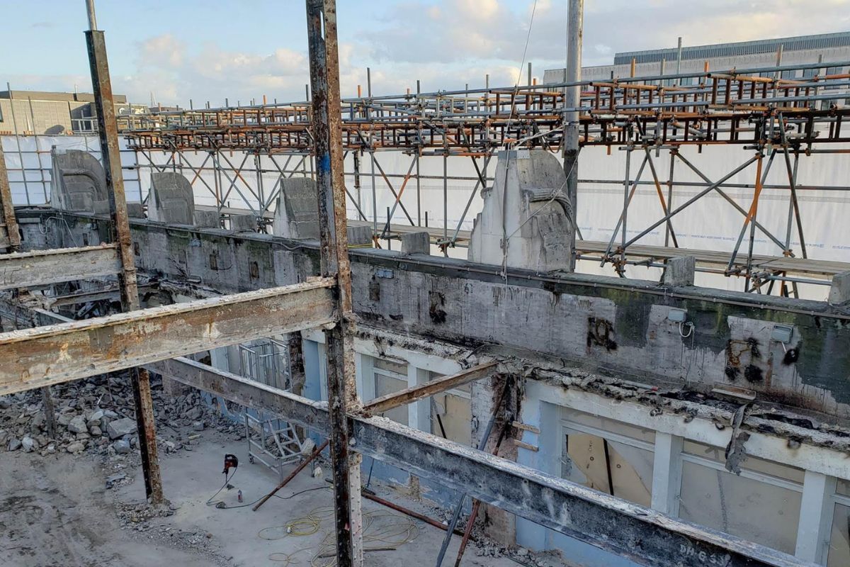 On this project, a fortuitous steel reuse exchange was brokered between Basil Demeroutis at FORE Partnership and me, on the back of an industry bicycle ride. It means that a lot of the 1930s steel we have dismantled from the site has been reused at TBC London, a workspace that will be net zero in its operation. We will also be reusing what we can on-site. Precast floor beams will be sprayed with a thick fire retardant material which will cover up any holes, and some localised repair work will be performed on the concrete-encased beams. Circular columns will be protected with intumescent paint and left exposed: a ‘distressed’ look that reflects the past lives of the building. It’s an approach reflected in our own London studio on Shad Thames, once a riverside grain store, where many of the original structural features remain intact.